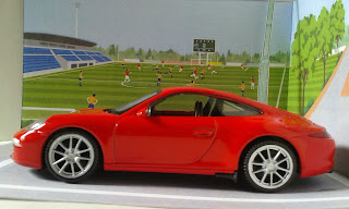 Pro: el color es bastante acertado y al igual que el Cayenne de Bburago, me gusta que lleve patente, que se le abran las puertas y que sea a fricción. Contras: Las proporciones son bastantes dudosas para ser un 1/43 con respecto a mis otros autitos; las cubiertas poseen un perfil "demasiado alto" para tratarse de un deportivo y las terminaciones de pintura son bastante flojas.